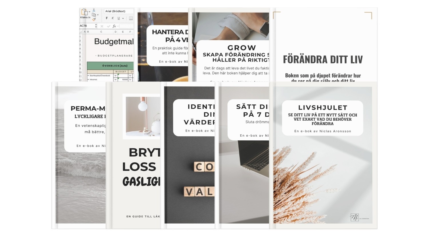 Här hittar du böcker och material som är skapade och skrivna av Niclas personligen med ett syfte: att hjälpa dig förstå dig själv bättre, ta tag i det som skaver och börja röra dig i rätt riktning.