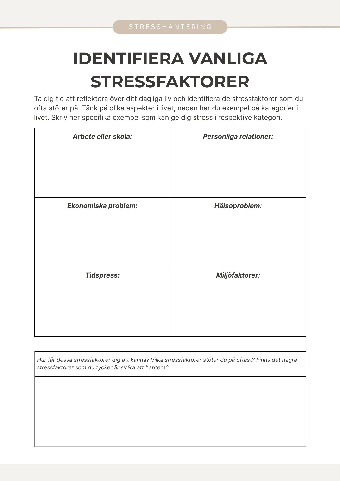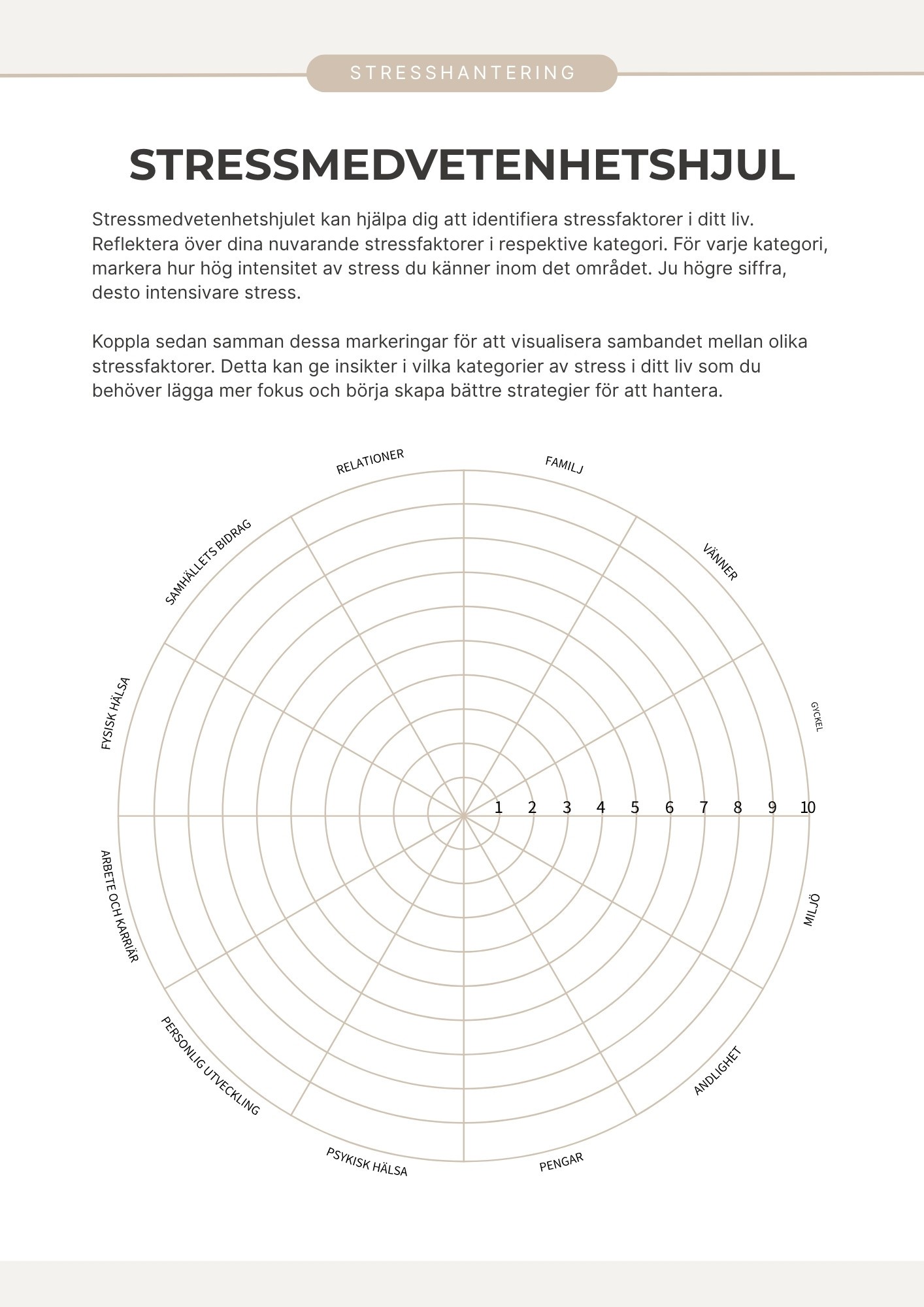 Stresshanteringsplan (stressmedvetenhetshjul, handlingsplan).